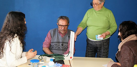 A nutricionista do projeto «Passo a Passo», da Abraço, e uma enfermeira do Centro Hospitalar de Gaia dinamizaram, no dia 11 de abril, um rastreio à hipertensão arterial dos moradores no empreendimento social do Cavaco, na Afurada.