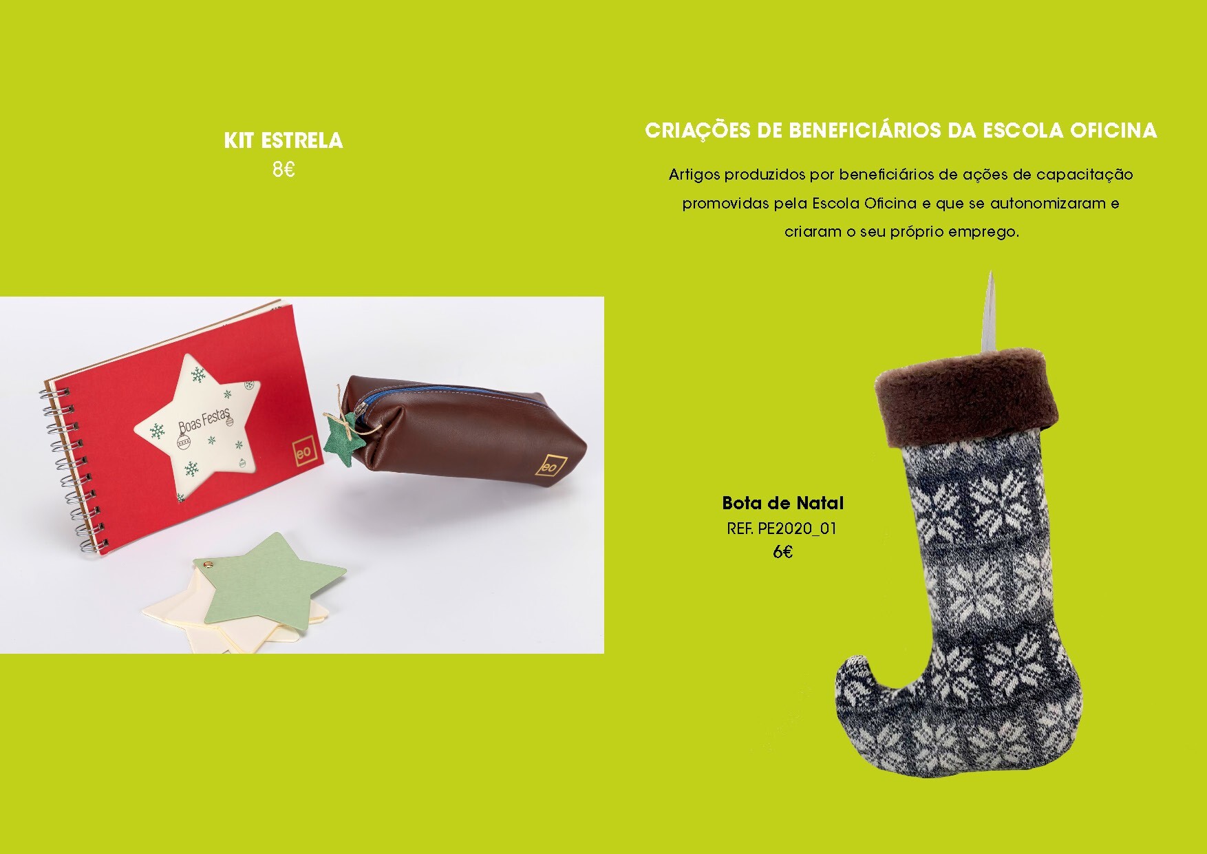 A Escola Oficina acaba de lançar o seu Catálogo de Vendas de Natal com mais de sessenta produtos criados com lixos e desperdícios industriais, numa lógica de economia circular e de sustentabilidade ambiental, tendo em consideração os princípios da responsabilidade social.
