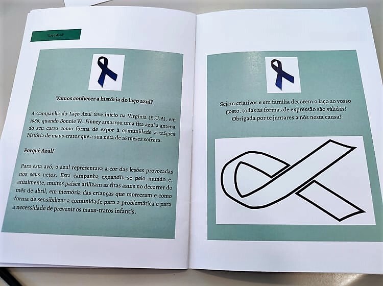 Os kits são compostos por materiais e textos que promovem momentos descontraídos e divertidos, criando uma oportunidade para todos os elementos expressarem sentimentos e identificarem experiências que proporcionam bem-estar em família. Simultaneamente, é distribuído em suporte papel um documento com informação a sensibilizar para a problemática dos maus-tratos contendo a história do laço azul e informação quanto à sinalização de situações suspeitas.