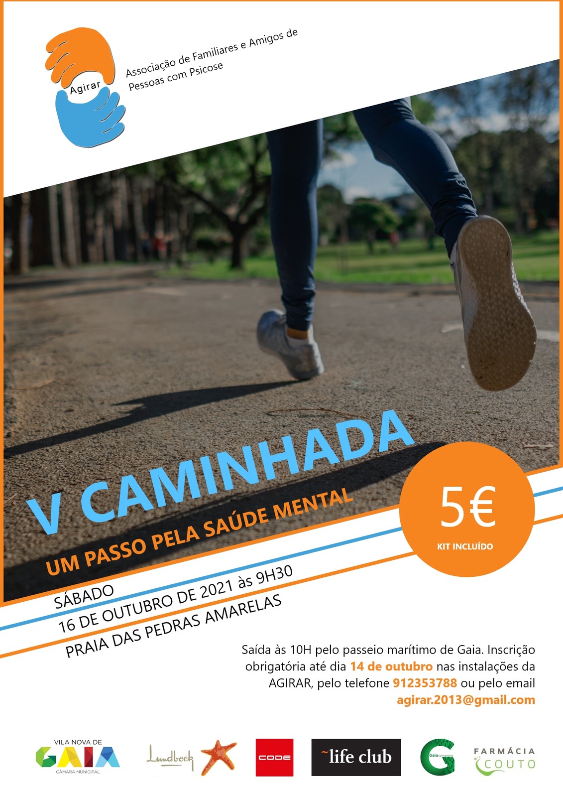 As fichas de inscrição na caminhada “Um passo pela saúde mental” deverão ser enviadas por e-mail para a Agirar - agirar.2013@gmail.com.