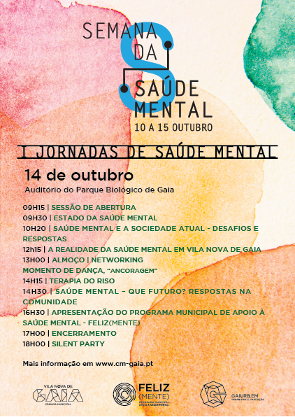 O Dia Mundial da Saúde Mental, que hoje se comemora, é assinalado pela Gaiurb e Câmara Municipal de Gaia através da co-organização da Semana da Saúde Mental, cujo ponto alto é a realização, no dia 14 de outubro, das I Jornadas de Saúde Mental, em que será apresentado o Programa Municipal de Apoio à Saúde Mental, denominado «Feliz(Mente)», e onde serão também debatidas as principais respostas que urge implementar neste contexto.