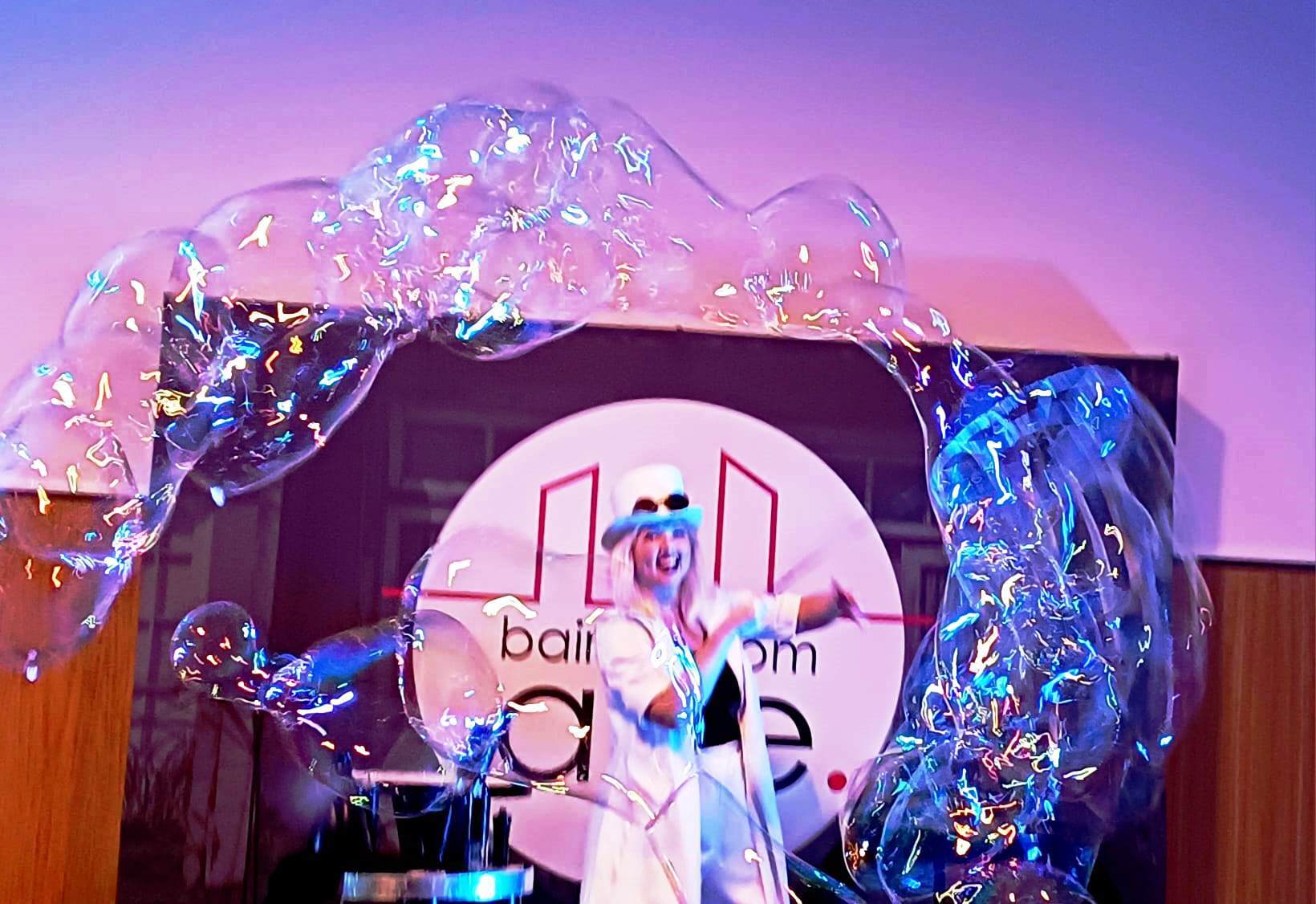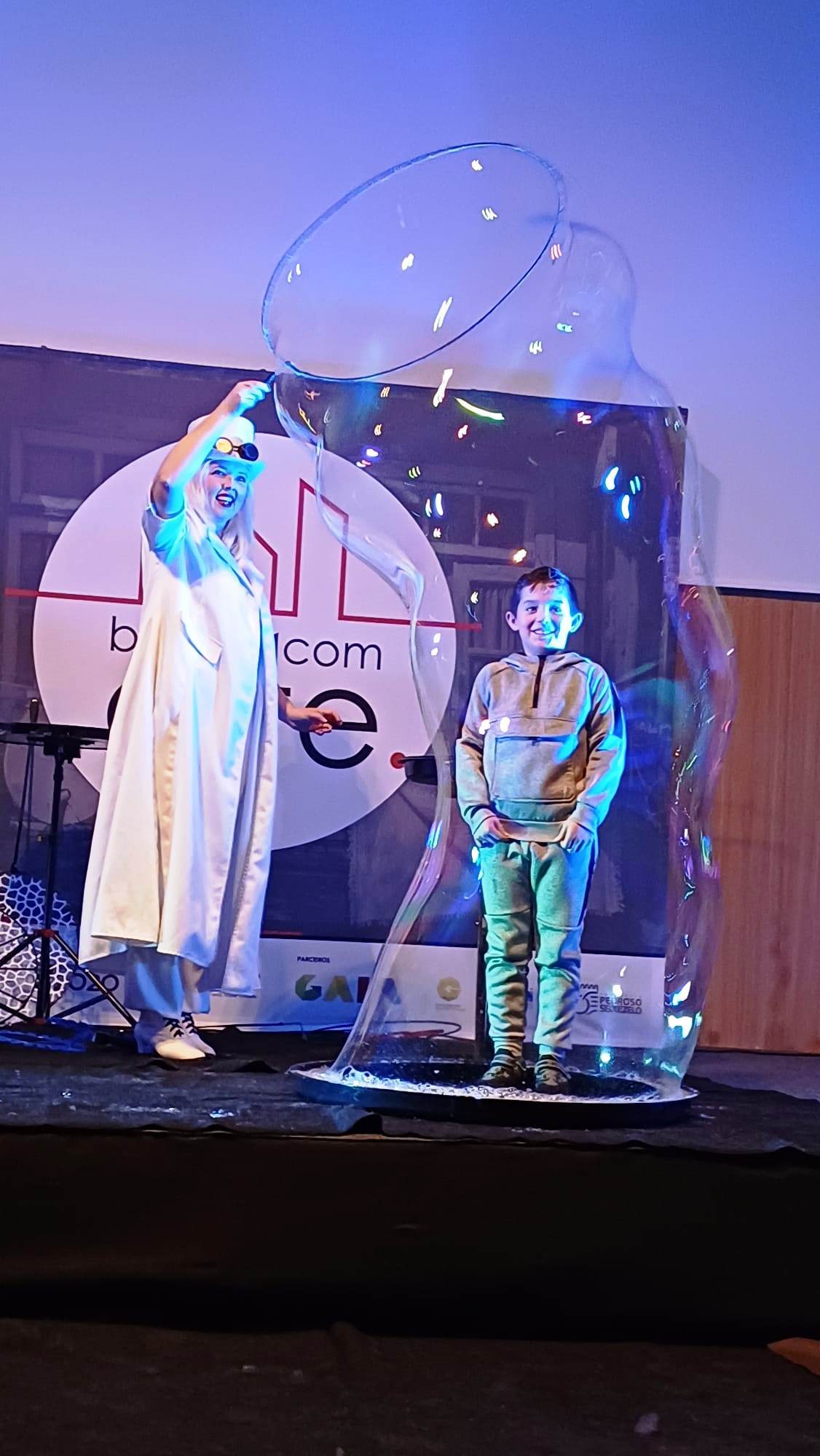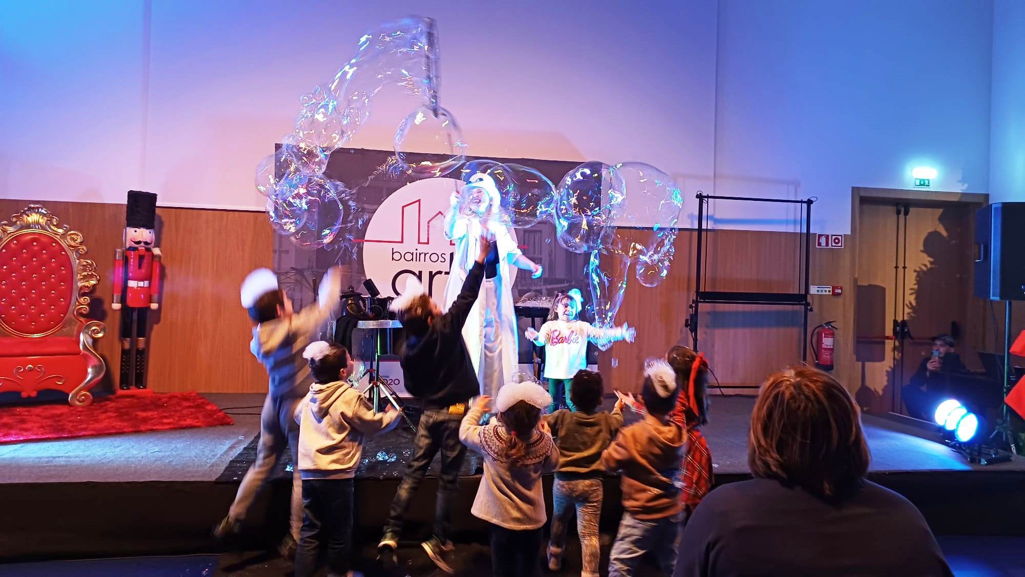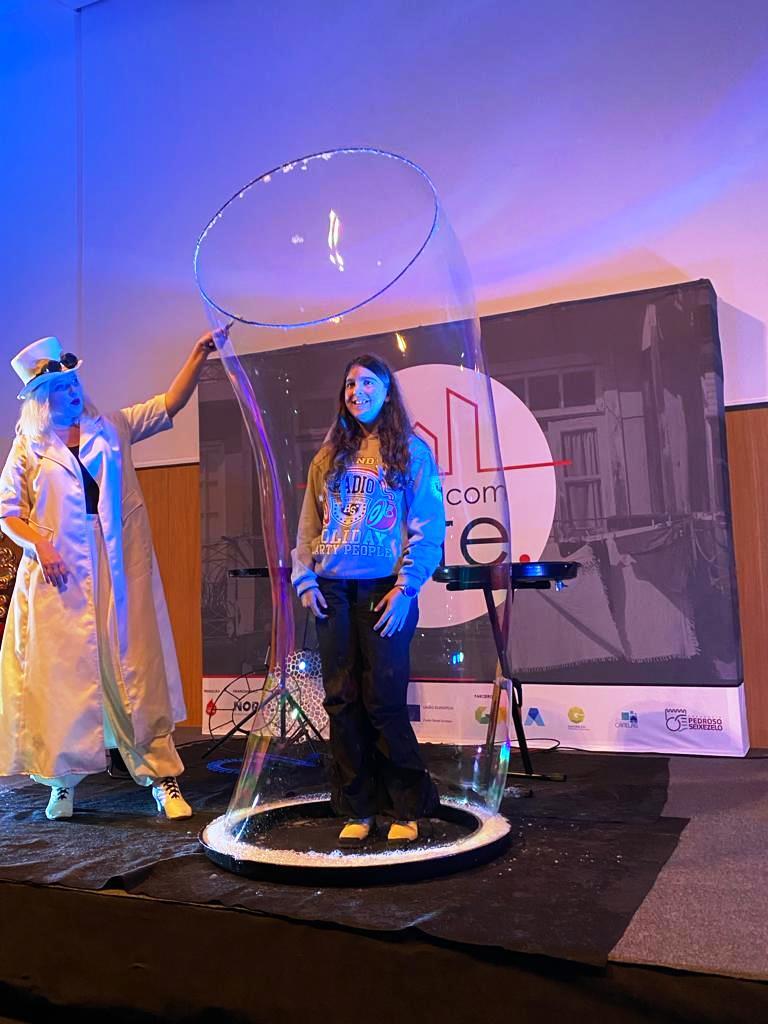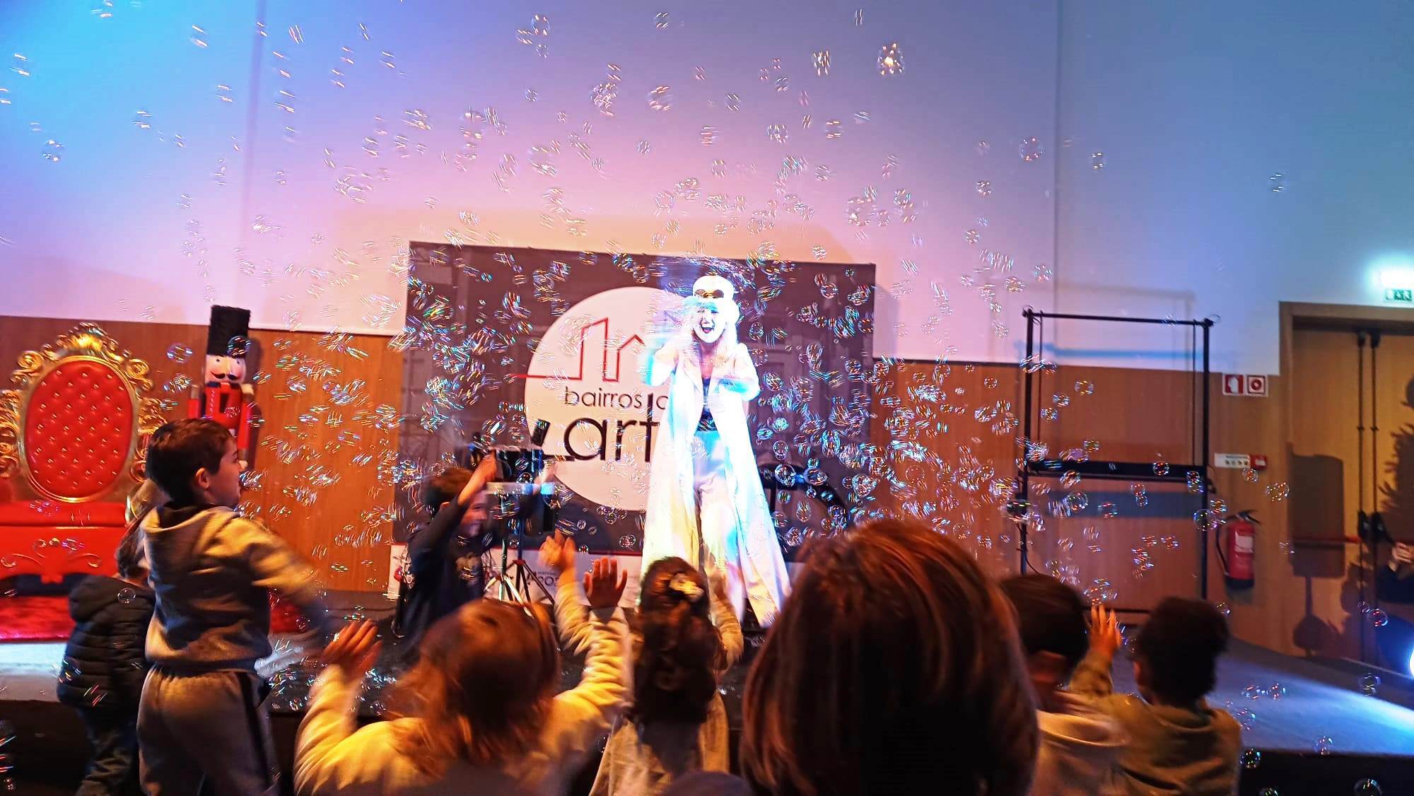 O espetáculo iniciou com a performance da ucraniana Iryna Munich que encantou miúdos e graúdos com a beleza das bolas de sabão, grandes e pequenas, brancas e coloridas, leves como nuvens e brilhantes como estrelas.
