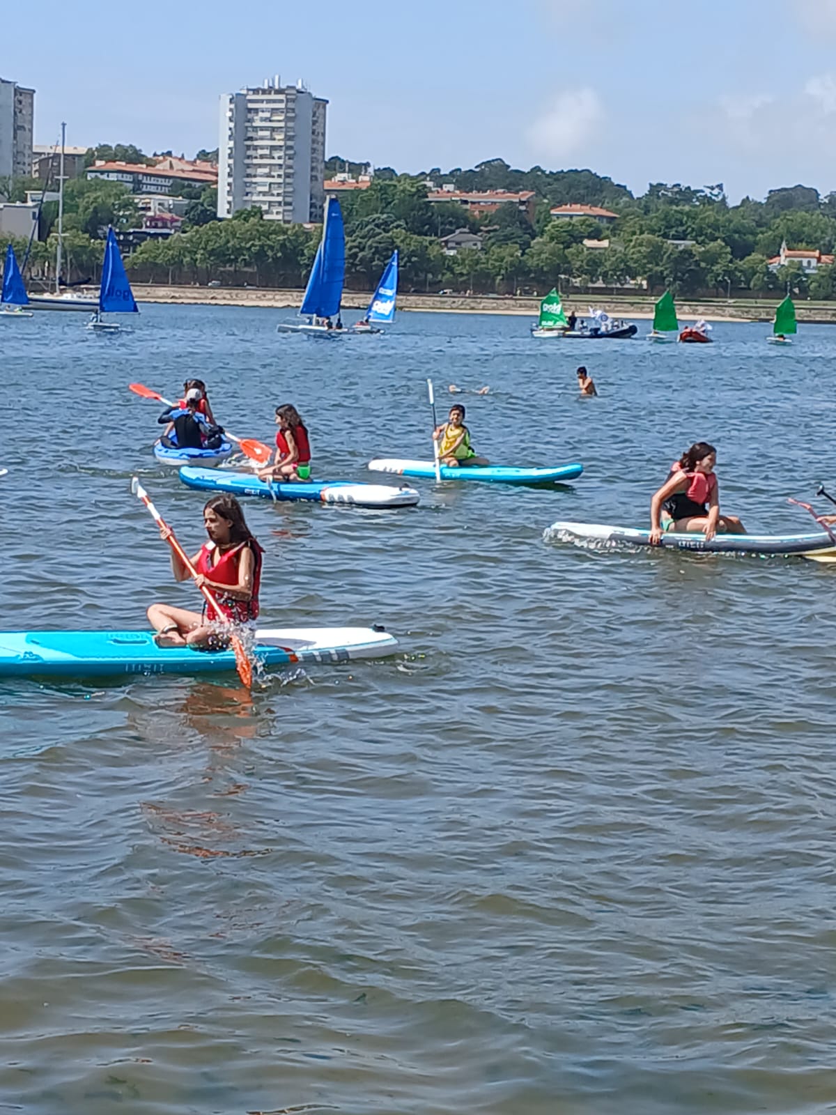 A prática desta modalidade náutica é uma das atividades preferidas destas crianças na ocupação dos tempos livres durante as férias escolares.